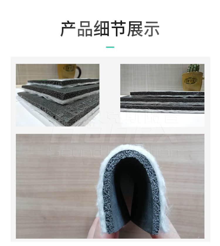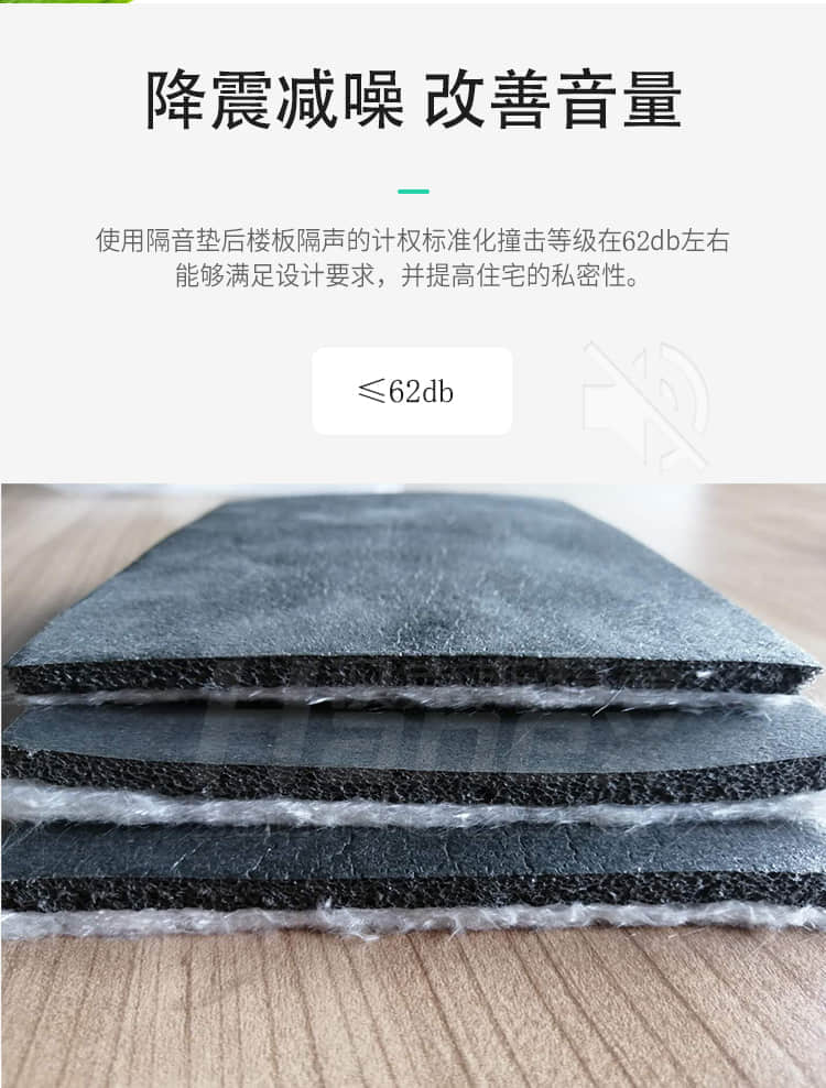 具有隔音好,防水防潮,無毒環(huán)保,隔熱保溫,回彈力好,重量輕,使用壽命長等特點(diǎn),是解決住宅噪音問題的專業(yè)隔音產(chǎn)品,是一種新型節(jié)能環(huán)保材料。