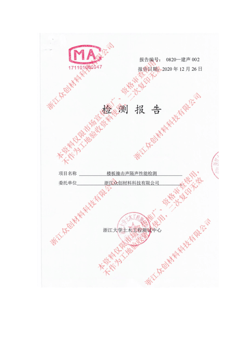 8mm改性聚丙烯保溫隔聲板樓板撞擊聲隔聲性能檢測報告